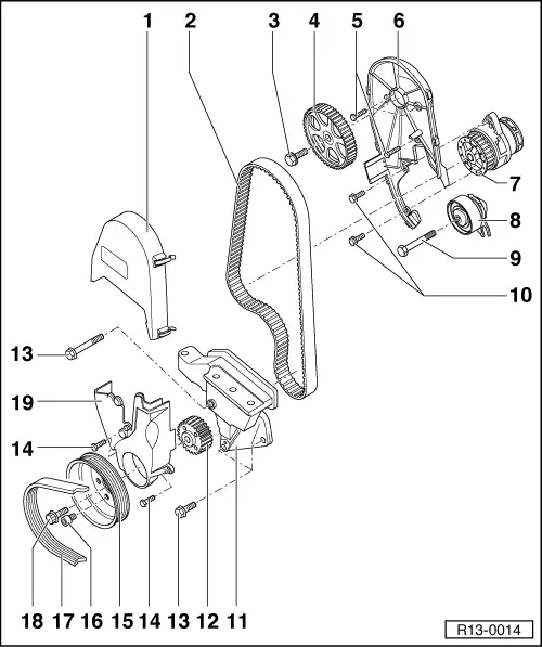 | q | Toothed belt: removal, installation and adjustment → Chapter. |