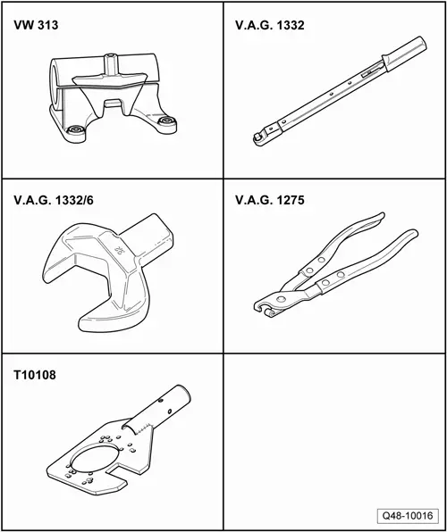 | Open the clamp with the Clamp pliers or VW 004V -VAG 1275- and move the bellows backwards. |