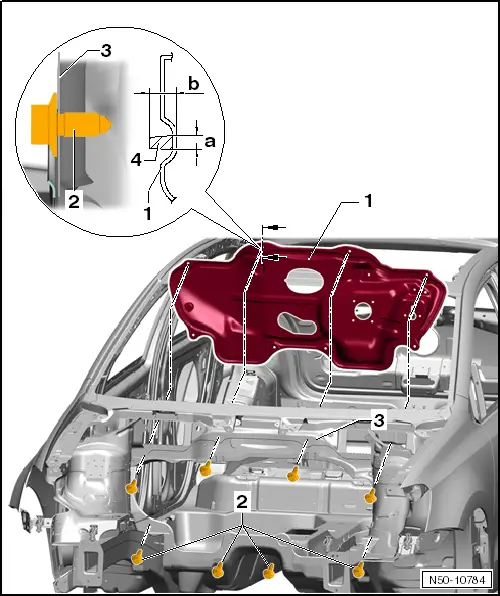 Note| The bulkhead -1- is bolted and also bonded in place with PUR adhesive sealant -3-. |
