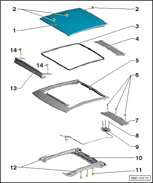 | Assembly overview - panorama tilting sunroof |