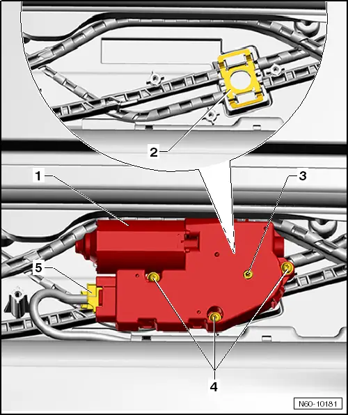 Note| t | In the event of power failure, the sliding/tilting sunroof with glass panel can be moved using a commercially available hexagon key directly on the drive. |