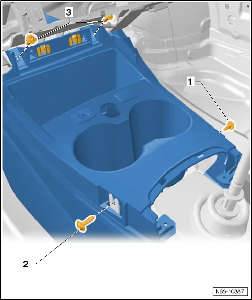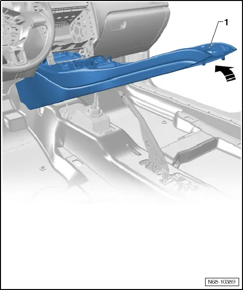 | – | Swing centre console -1- upwards -arrow- and, depending on vehicle equipment, separate wiring harnesses. |