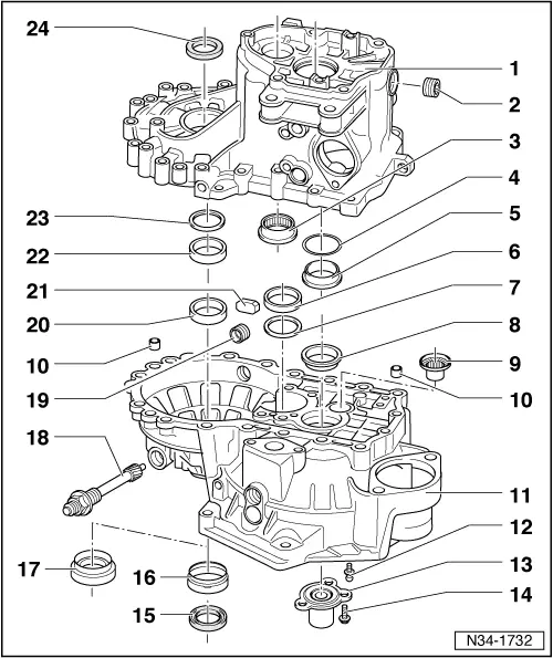 | q | If renewed: adjust input shaft and differential → Chapter |