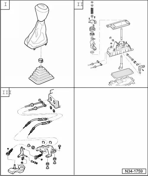 | III - | Assembly overview - removing and installing selector cables → Chapter. |